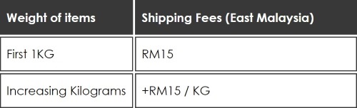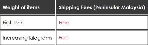 Shipping fees will be different based on the location of customers (Peninsular Malaysia & East Malaysia).